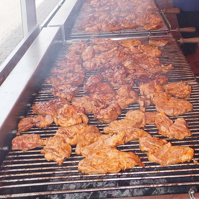 Grill węglowy z 2 rusztami do grilowania 6 szpikulcy z silnikami obrotowymi wykonany ze stali nierdzewnej, regulowanay ruszt