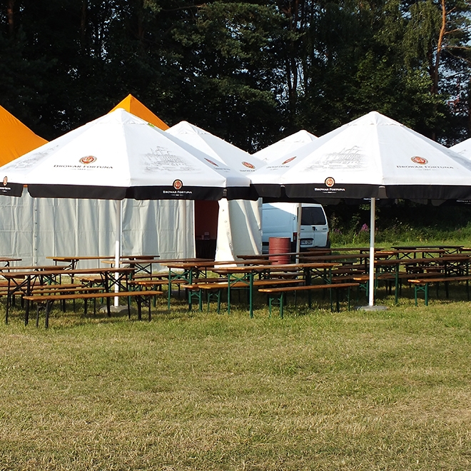 duży parasol ogrodowy o średnicy 4m