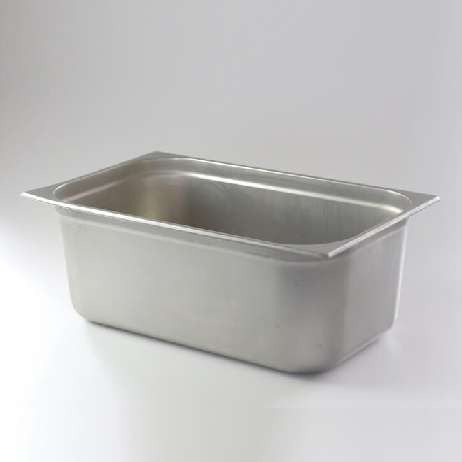 Pojemnik ze stali nierdzewnej o wymiarach 530mmx325mmx150mm(h) stosowany do piecy, lodówek, bemarów, podgrzewaczy.