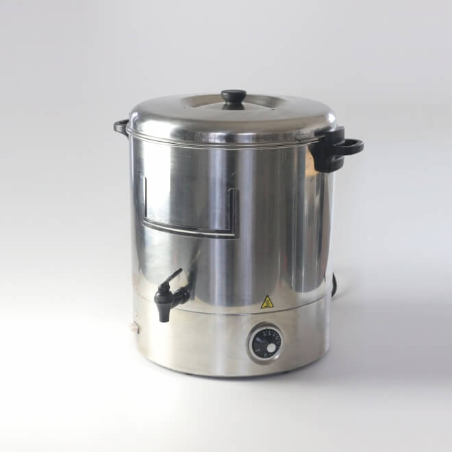 Urządzenie elektryczne ze stali nierdzewnej przeznaczone do podgrzania lub zagotowania wody.posiada kranik I przykrywką z otworami odpowietrzającymi