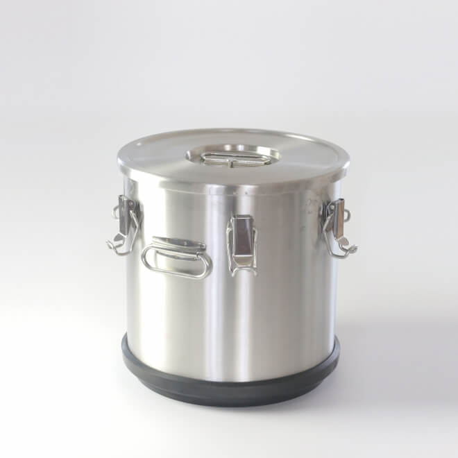 Termos do transportu żywności z pokrywą zawierającą silikonową uszczelkę .wyposażony w 6 zatrzasków I wentyl odpowietrzający eliminujący podciśnienie.podstawa wykonana z elastycznego tworzywa